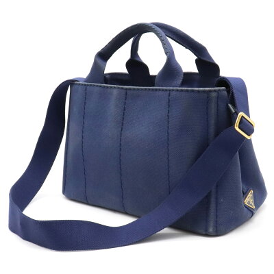 【バッグ】PRADA プラダ CANAPA カナパ トートバッグ ハンドバッグ 2WAY ショルダーバッグ 斜め掛け キャンバス ネイビーブルー ゴールド金具 1BG439 【中古】