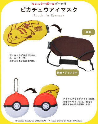 アイマスクをコンパクトに収納できるモンスターボール型のポーチ付。