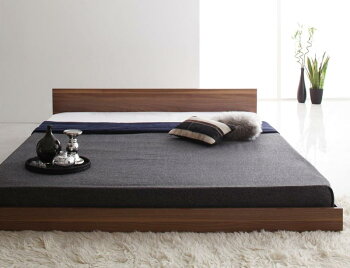 送料無料 ローベッド クイーン フラットマットレス対応 Dormirl ドルミール プレミアム2層ポケットコイルマットレス付き フロアベッド ウォールナット ブラック クイーンサイズ マット付き ロースタイル 040118215