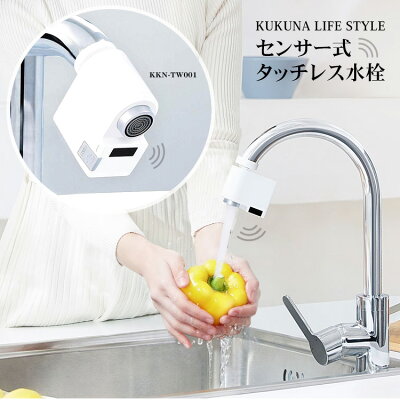 センサー式タッチレス水栓 蛇口に取り付けるだけ! 蛇口に触れずに水が出るから衛生的 パーツ6種類 泡沫水栓対応 連続放水 自動 蛇口 節水 清潔 衛生的 充電式 KUKUNA LIFE STYLE【送料無料 メール便】【★】/タッチレス水栓